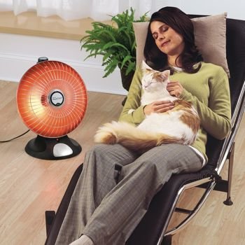 Comments: My house is not well insulated. I have 20' ceilings downstairs, where I spend most of my evenings, and high ceilings in my upstairs office. Running the furnace during these cold winter days does little to make me feel warm and most space heaters feel too puny trying to heat such large spaces. What I needed at is known as a parabolic dish reflector heater. Despite some overly-zealous descriptions, these heaters are not space-age technology. My great-grandmother had a parabolic dish reflector heater more than 60 years ago. Due to Costco's active in-store displays every year, Presto seems to be by far the #1 model. The selling price has risen to a ridiculous 70 - 100 dollars for something that must only have about 5 bucks of materials in it. After reading many reviews (see rebuttals below), I decided this was the right choice despite several logical negatives.Pros: It works. The night before I bought it I shivered and was cold to the bone. As soon as I set it up the two of us sitting about 7' apart in front of the TV felt a comfortable warmth. I stress the word comfortable. Neither too hot nor too cold. If either of us moved a few feet out of the "zone" we immediately noticed we were much colder. This is exactly how parabolic dish heaters work ... they focus ALL of their energy into a relatively narrow cone of heat directed at the people who need to be heated. They are NOT intended to heat entire rooms or houses. Perfect for a small group of people and/or pets sitting in front of a TV (think fireplace, the effect is very similar) or someone working at a desk. At this the Presto (and likely other similar brands) absolutely excel. What makes the Presto different from some of the other brands is that it uses a very traditional heater coil like in an old-fashioned toaster. It is exactly the same technology my great-grandmother's heater used back in the 1950's. Some other models use a halogen bulb like a desk lamp. They are blinding to look at and the bulb burns out every few months. The Presto's coils produce only a soft reddish glow.Cons: It does not tilt up and down. I can live with it not oscillating from side to side, but the fixed angle is just plain wrong and can't be changed. fixed angle seems to defeat the idea of a focused cone of heat. I think only a 10 percent range would be far better than none at all. The next item is one that confounds almost everyone ... why put a nightlight into the base of a space heater? It simply does not make sense. You can take the bulb out, which many people say they do, but why is it there in the first place? The heater is also just a bit too lightweight. As a heater with the potential of tipping over you would think it would weigh at least as much as a table fan. Presto totally missed the boat on this, thinking for some reason that a very LOUD buzzer if the unit is tipped would be a better idea. Some people hate the buzzer. Personally I think I would rather have it annoy me than start a fire, but a better base design would also not be so bad.Rebuttals: It seems the #1 complaint is that the Presto Heat Dish does not heat their entire room (or house). This is NOT a whole-house or whole-room heater. It is a specialized heater that is designed and intended to focus an intense amount of heat in a very pinpointed direction and the lowest possible energy use. It will also cause a rise in overall room temperature, but that is NOT the intent or design of a parabolic dish reflector heater. Used properly, this type of heater is nothing short of amazing. Why heat the WHOLE room (like my 20' ceilinged living room) when we are sitting in a small area in front of the TV? As far as the night-light, I agree Presto is totally weird in that area but if you hate it, pull the bulb out and enjoy the heat. The manufacturer states in the instructions that you can replace the bulb with a standard Christmas tree bulb. A dark blue bulb actually looks quite attractive. Another negative comment I have seen is that the unit does not have a carrying handle. Reality is that the carrying handle is the thing on the back that is labeled "carrying handle" and clearly pointed out in the instruction manual as a carrying handle. Other review errors state that it points upward at a 60 degree angle. It really points upward at about 15 degrees, about right for someone sitting in a normal chair.Summary: It rates a fairly solid 5 despite the fact that the first one I bought had a thermostat knob that did absolutely nothing. No matter where I set it, the thing operated continuously on high. Even if I turned it off, the heater was still on non-stop on high. An obvious defect (what are the chances?). I cringe when I read reviewers that say they got a lemon and will NEVER buy anything from that manufacturer. I can't believe a major brand name is junk just because of one bad apple. Update: The unit was instantly replaced and the new one's thermostat works as it should.
